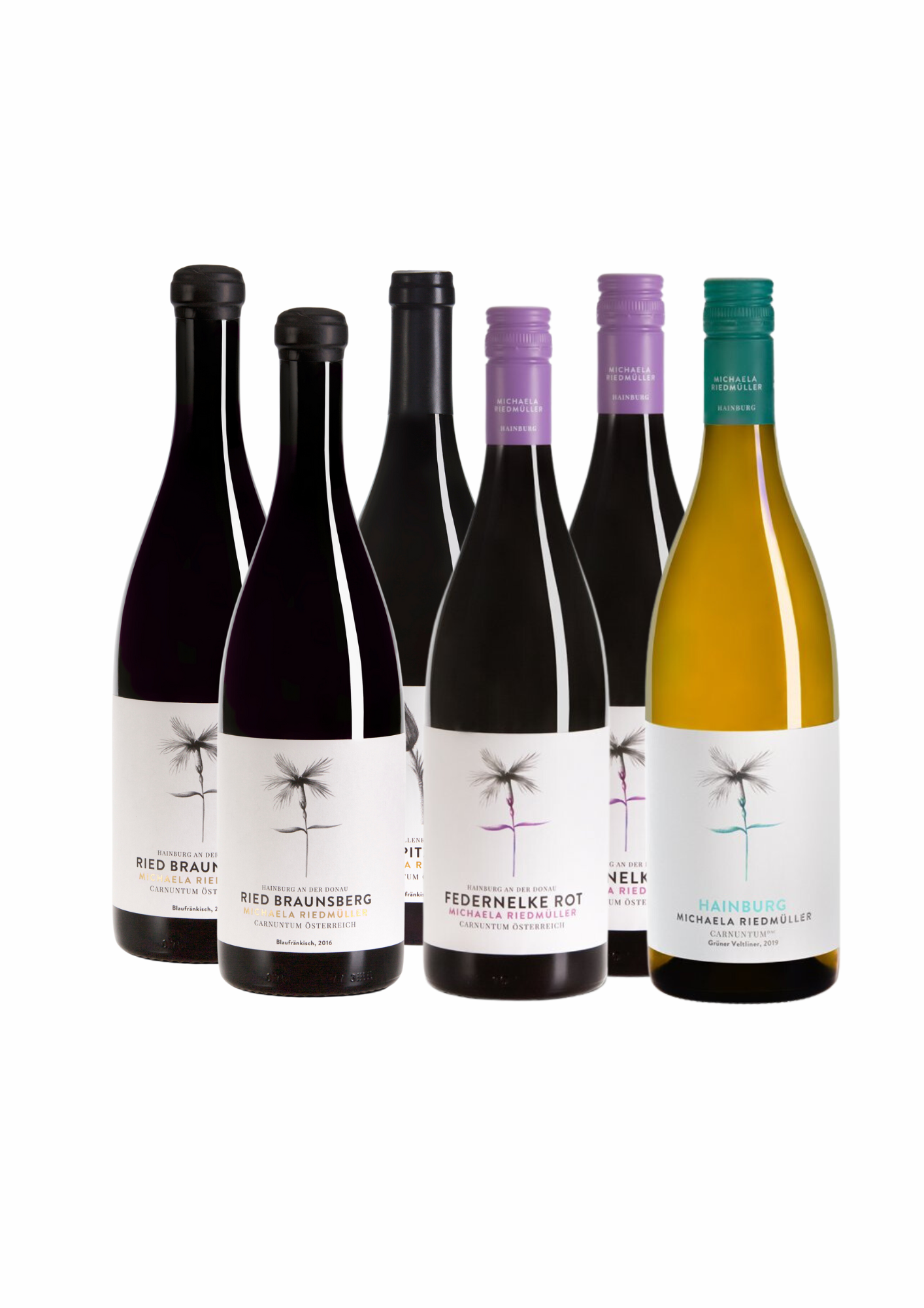 "Ein Berg an der Grenze hat es Michaela Riedmüller besonders angetan: der Braunsberg. Tatsächlich stellt der charakteristische, prägnante Berg mit seinem massiven Felsgestein – geologisch Teil der Kleinen Karpaten – einen der letzten weißen Flecken auf Österreichs Weinlandkarte dar. Hier vinifiziert die Winzerin mit Begeisterung Blaufränkisch der besonderen Art. Elegant, fein und kühl – das beschreibt wohl am besten die Stilistik ihrer Blaufränkisch, die von Gneis und Granit des Braunsbergs geprägt sind. Nur zehn Kilometer vom Braunsberg entfernt ragt der Spitzerberg hervor, durch sein sehr trockenes und kalkreiches Terroir bringt Michaela Riedmüller hier Blaufränkisch mit straffen Tanninen, feiner Mineralik und tänzelnder Säure hervor. Nicht zu vergessen sind ihre »Down to Earth«-Weine, ein Name, der passender nicht sein könnte. Es war der Beginn ihrer eigenen Reise, der Antrieb dafür, ihr »eigenes bodenständiges Ding« zu machen. Die »Down to Earth«-Serie steht für unfiltrierte, maischevergorene, im Holzfass gereifte authentische Weine."